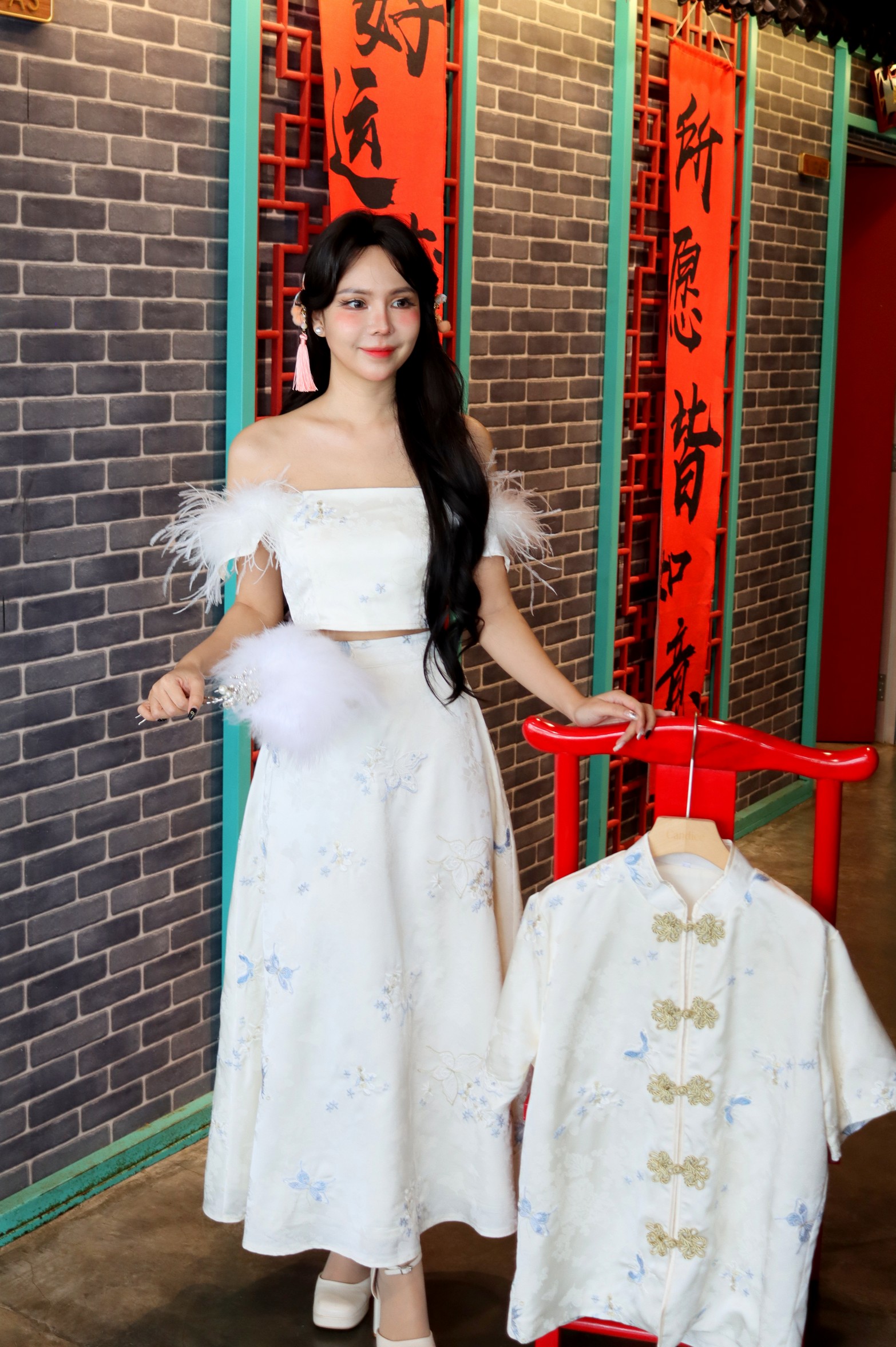Top behind elastic Female set wear only Refer couple link ishttps://candice.com.my/product/c-cloudrest-series-casual-tang-suit/ HAND WASH ONLY